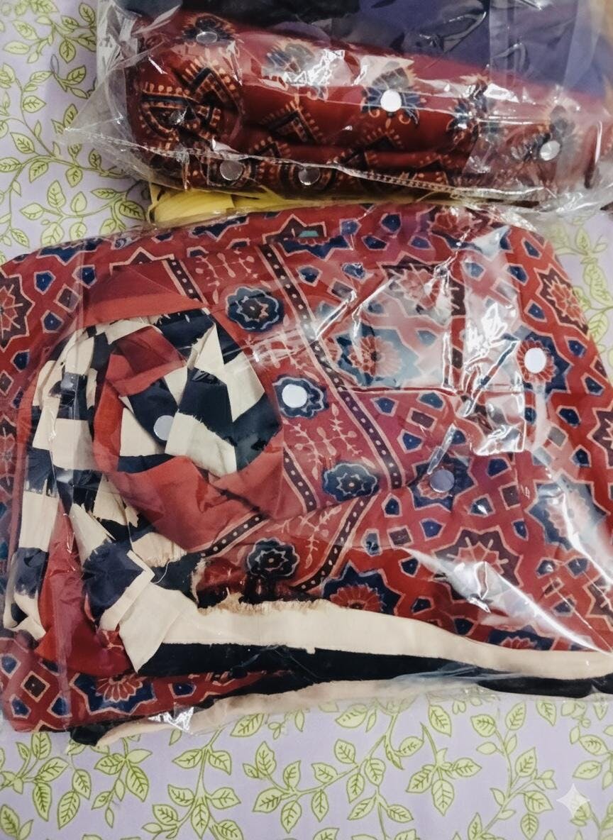 - Marks from dyes and harda occur during the hand blocking and dyeing process and are a testament to the artisan’s work. These are not flaws or damage, but authentic signs of a genuine handcrafted Ajrakh.